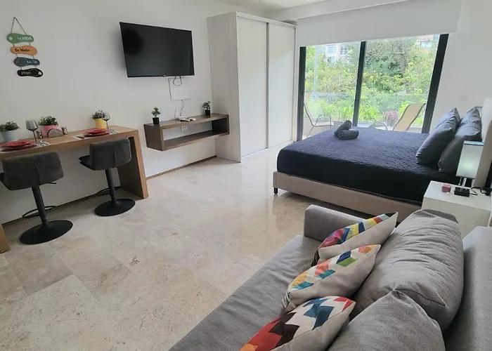 Este apartamento de 40 m², Vistas De Ensueno Al Mar Azul Y Al Mar Verde Playa del Carmen, está situado en el barrio Centro de Playa del Carmen, a 2 km del Acuario de Playa, y tiene vistas a la piscina. El apartamento ofrece una terraza y vistas al jardín.